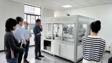 一行20余人首先走进松江泰坦数智研发中心,副总裁马琳杰、科技产品总监范亚平等带领参观了中心综合实验、工艺实验、合成实验、理化室、液相室、核磁室等主要实验室。详细了解最新研发的化学合成自动化工作站工作机理。工作站涵盖高精度固体和液体投料、惰性气氛保护、加热、振荡、光反应、微波合成、产物处理、在线分析等功能,为药物发现、药物生产等场景的化合物库合成、反应条件筛选、催化剂筛选、工艺条件优化等提供完善的解决方案;在理化室,观看第三代智能通风橱现场演示实验环境实时监测与参数显示,一键启停与远程控制操作,在线分子信息库检索与实验数据实时记录与传输功能。参观过程中,双方碰撞出未来共建标准化示范实验室的设想。
